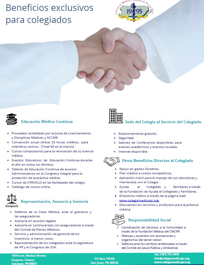 Fue el 13 de agosto de 1994, que se aprobó la Ley 77, dando fuerza legal a la creación del Colegio de Médicos-Cirujanos de Puerto Rico. El Colegio se hizo realidad luego de constantes y fuertes luchas médicas. Nuestra institución emanó de la necesidad de crear una organización que agrupara a todos los médicos de Puerto Rico. Ese mismo año, el 80% de los médicos que participaron en un referéndum general, refrendaron su colegiación. El Colegio nació del seno de la Asociación Médica de Puerto Rico, organización centenaria y respetada, que a través de los años comprendió y aceptó la realidad de que una organización voluntaria sin fuerza legal no podía cumplir a cabalidad el cometido de autoreglamentar, pautar, fiscalizar y defender apropiadamente la gestión médica y la relación médico-paciente. La Asociación Médica, finalmente dio su apoyo conceptual y luego económico a la primera fase de establecimiento del Colegio.